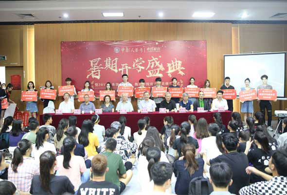 7月16日上午10時,中影人藝考2019屆暑期開學盛典暨2017級優秀學員頒獎儀式在中影人藝考中戲校區隆重舉行。在這個匯聚榮耀與期待的日子,沉淀了十六載的中影人藝考將以全新的面貌,迎接來自全國各地的逐夢學子,一起朝著夢想啟程! 北京舞蹈學院教授·中影人藝考舞蹈學院名譽院長潘志濤教授,以及中影人教育集團董事長·青年企業家楊立成先生 出席了此次開班儀式。