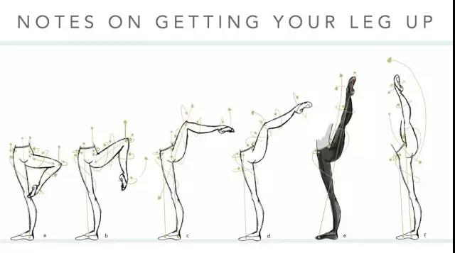 阿大糾,Adagio,慢板,多指控制類動作。緩和的,慢舞這一類型的舞蹈動作。下方圖片中,能夠感覺到在整個動作中,腿部的肌肉得一直都在做功。在不斷的輸出力量的同時,也不能忘記進行控制。