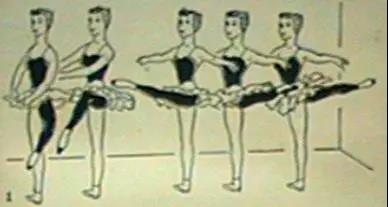 舞蹈動作要點: 支撐腿下沉的同時,活動腳腳尖到達支撐腿足踝的前面或后面。