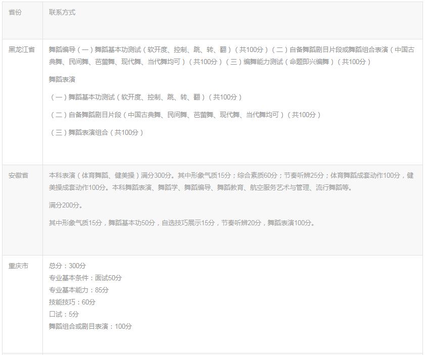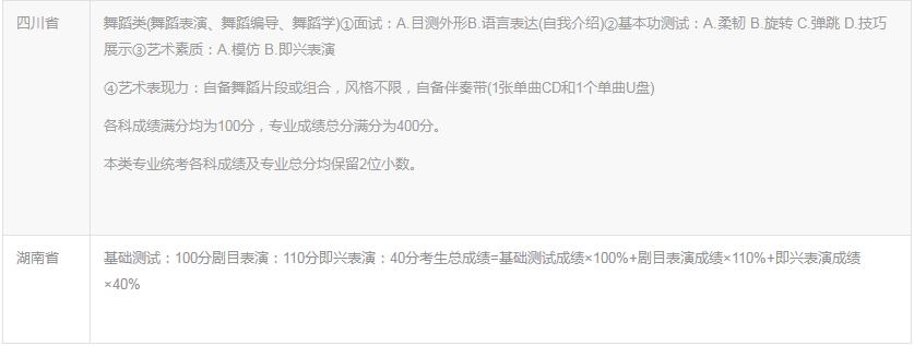 2020年各省舞蹈類省考內容匯總