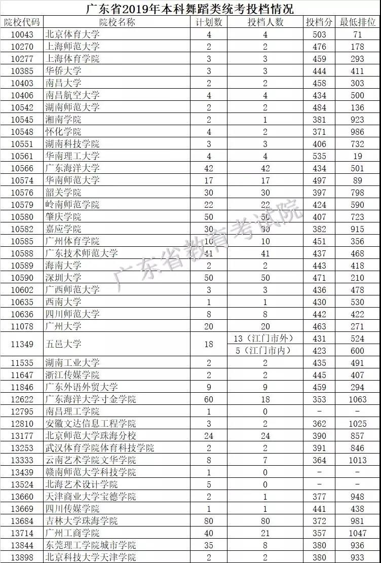 今天為大家整理了2019年全國各高校在廣東省的錄取分數情況。全部認可廣東省舞蹈統考,校考院校不計在內。