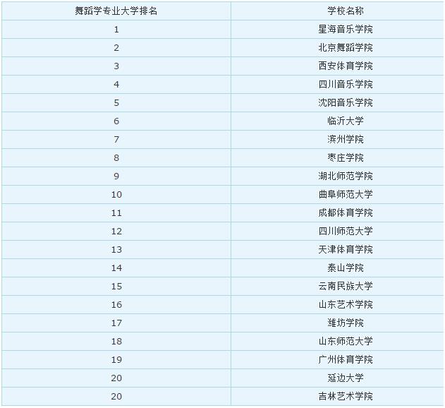 舞蹈學專業大學排名: