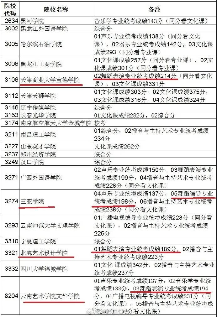 黑龍江2020年普通高校藝術類本科一批B段舞蹈類院校錄取分數線: