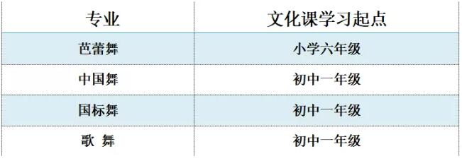 ?、?文化課學習:附中文化課教學在義務教育階段執行“六三”制義務教育的學習進程,高中階段開設普通中學的文科類課程。各專業的文化課學習起點為: