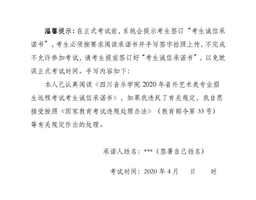 各專業遠程提交考試視頻資料將于四月上旬開始至四月底前結束。考生提交視頻資料的具體時間將另行公布。請考生密切關注“四川音樂學院招生信息網”(官網)和“四川音樂學院校考”微信公眾號發布的通知。