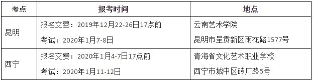 云南省考生請于2019年12月26日17:00前在云南藝術學院招考云平臺完成網上報名、交費。
