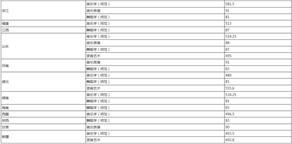 音樂學(師范)、音樂表演、舞蹈學(師范)、錄音藝術專業按統考專業成績排序。