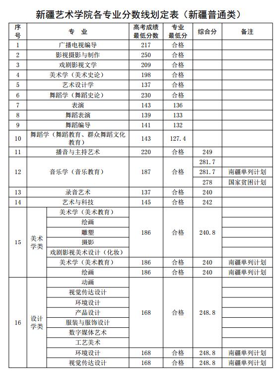 更多內地地區分數線,可關注新疆藝術學院官網了解更多!