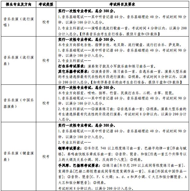 注:1.所有報考音樂類校考的考生在參加專業主科面試時應著淡妝、不穿高跟鞋、不穿演出服。